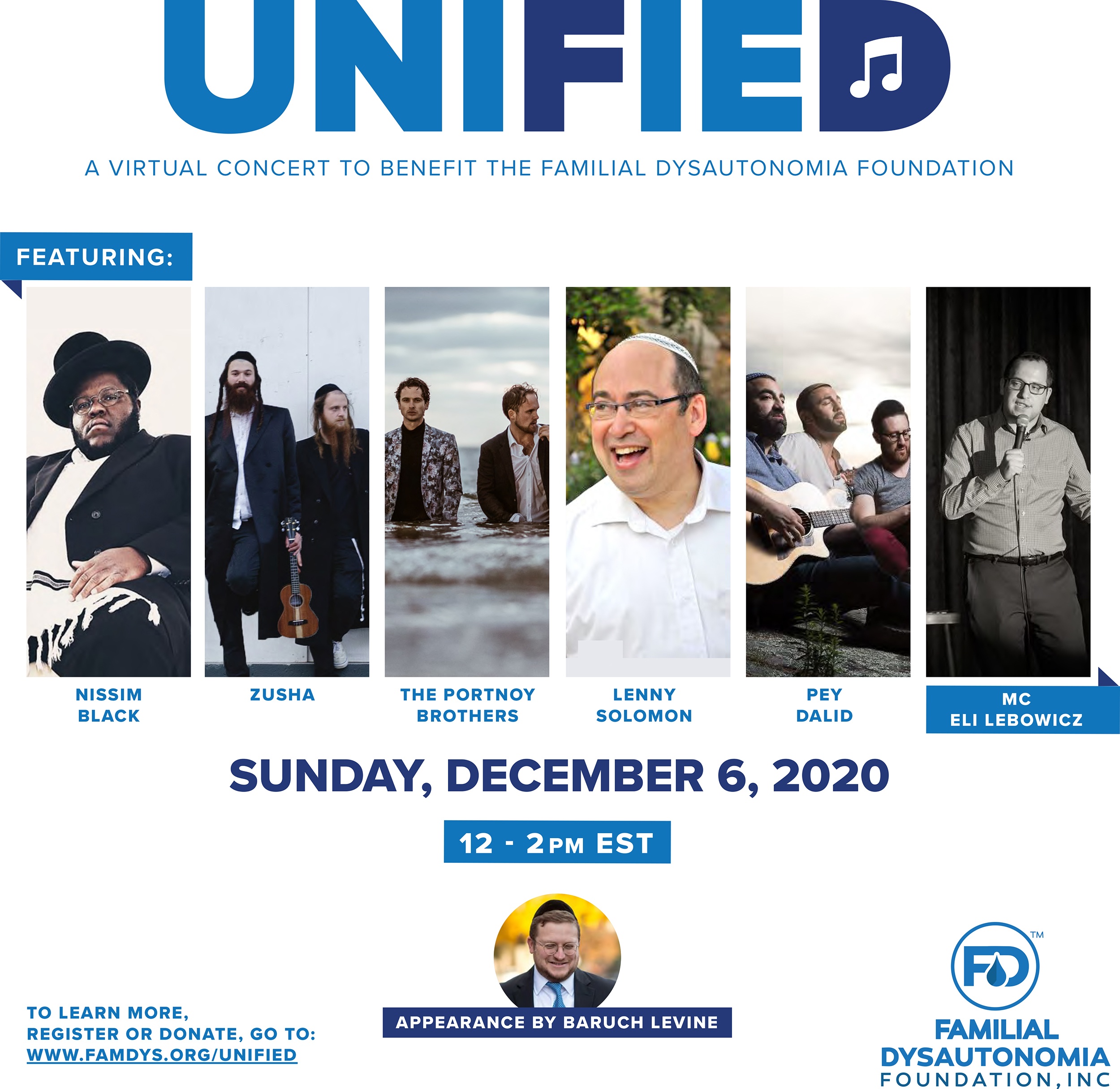| 06 Dec 2020 | UNIFIED - A virtual concert to benefit the Familial Dysautomia Foundation | UNIFIED - A virtual concert to benefit the Familial Dysautomia Foundation | ||